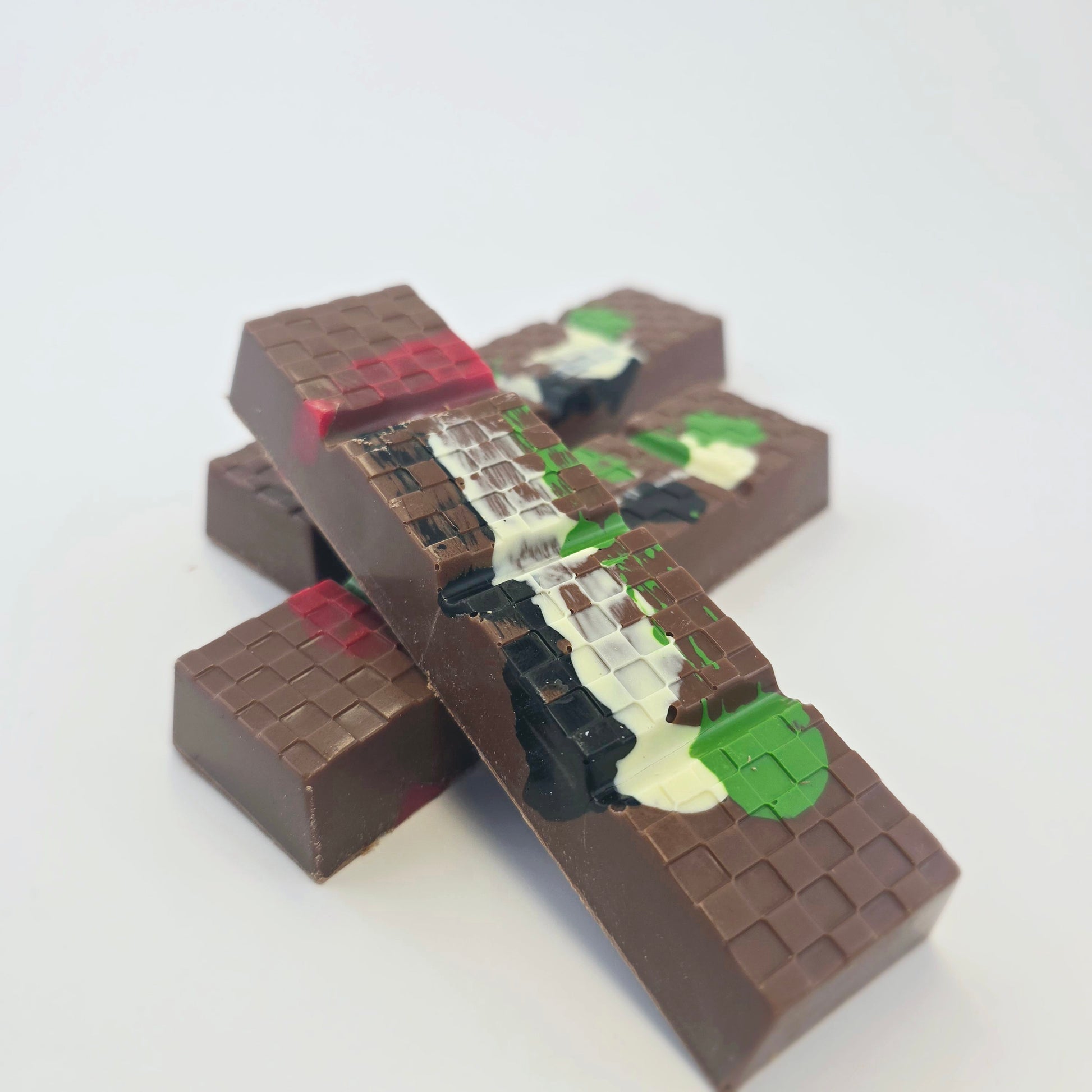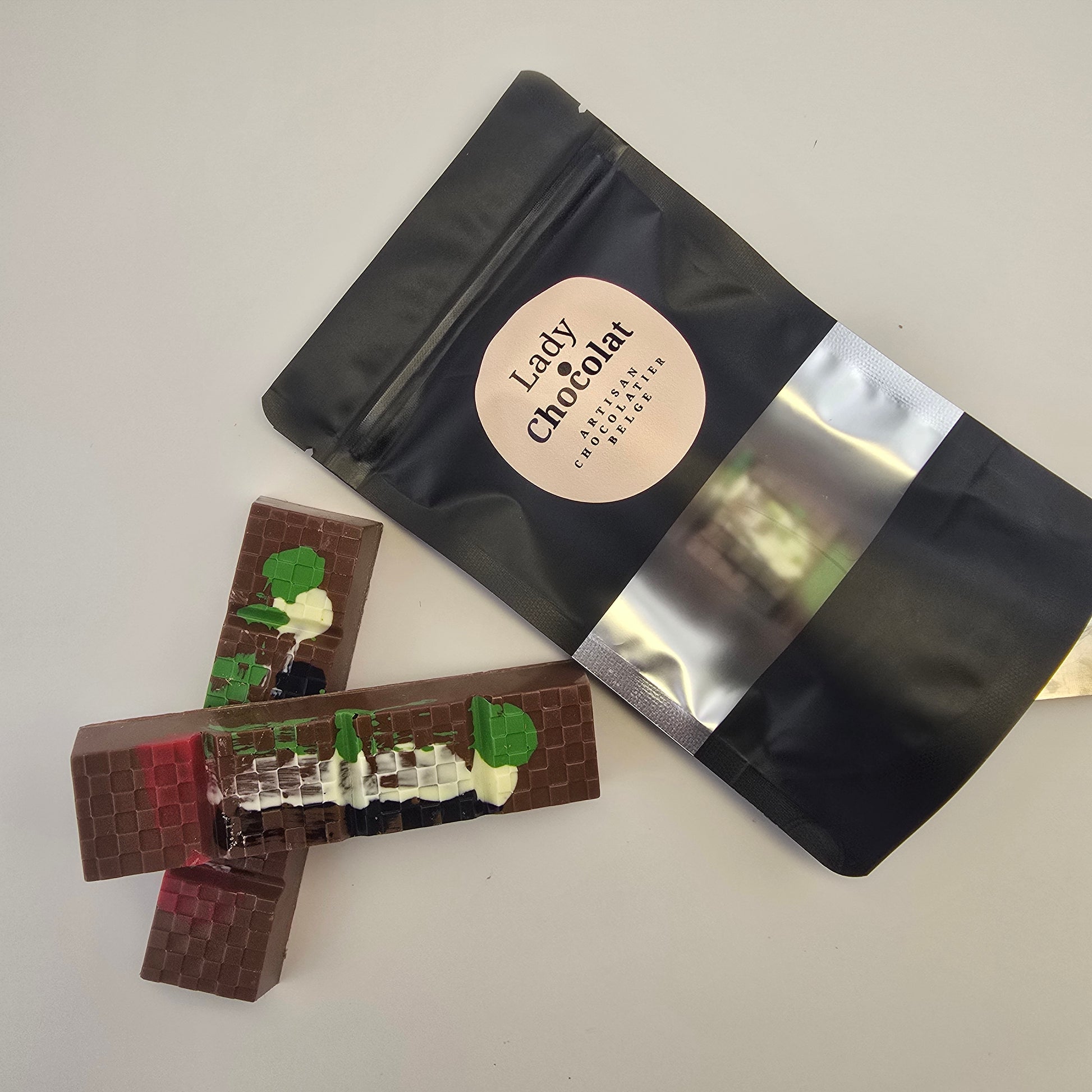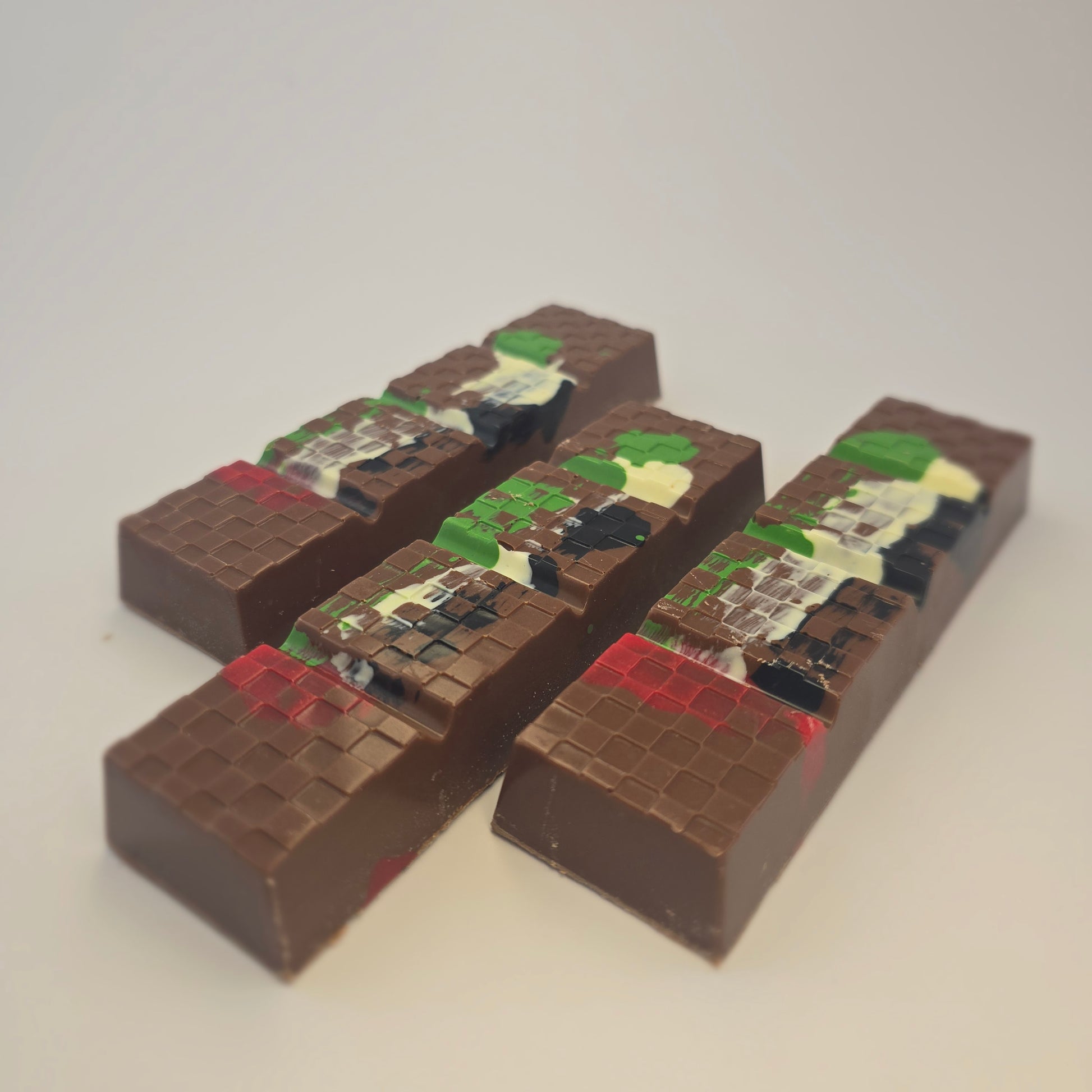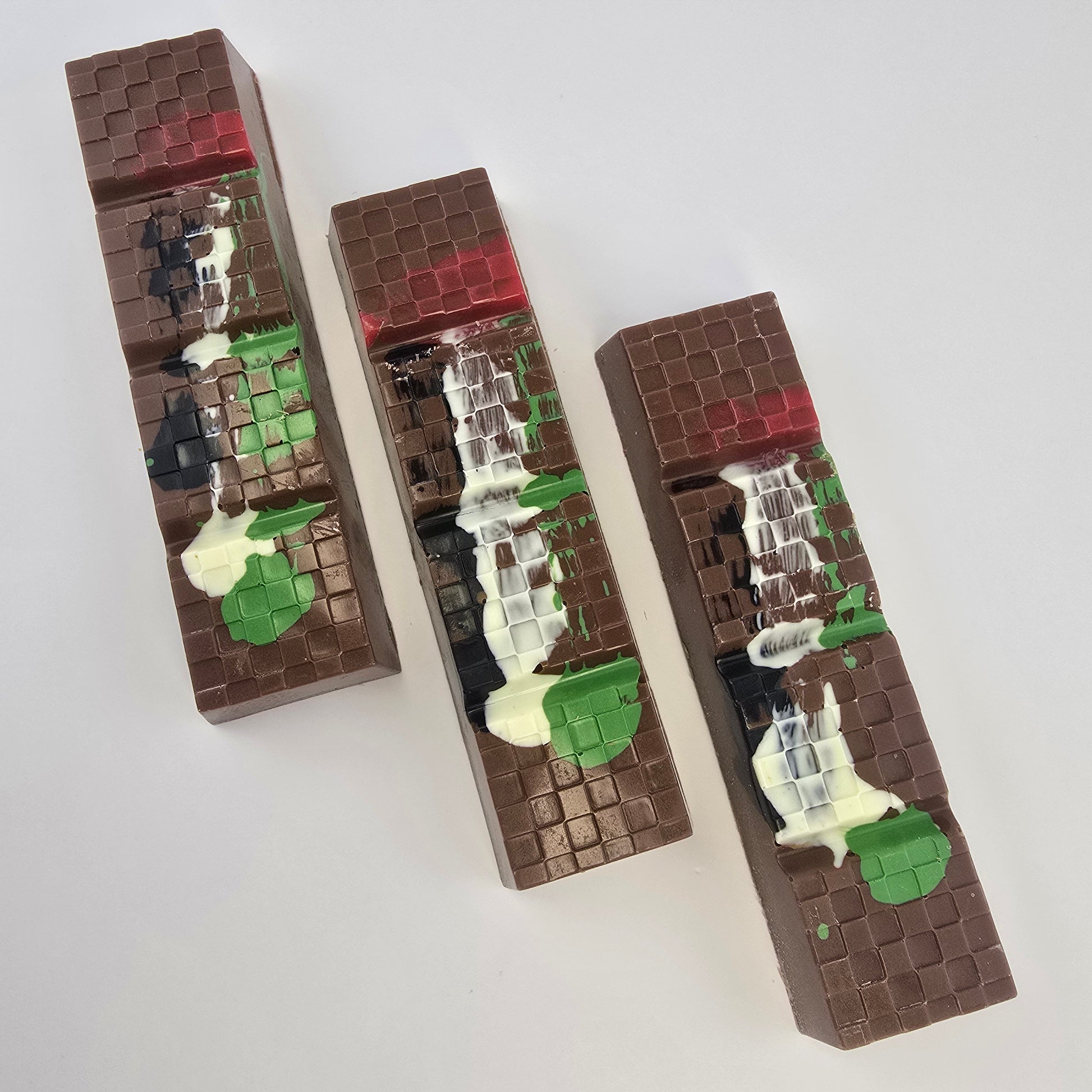 Plongez dans le luxe gourmand avec ces barres de chocolat au lait délicatement garnies d’une crème onctueuse à la pistache et de kunefe croustillant